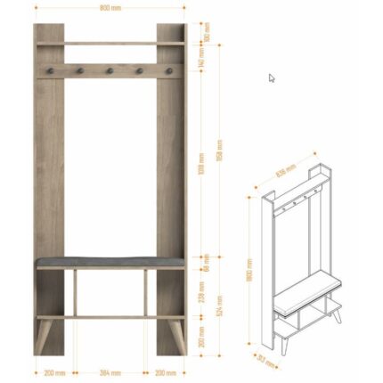Έπιπλο εισόδου Kali Atlantic Pine ανθρακί μελαμίνη 113 6×37 5×179 7εκ ed12678