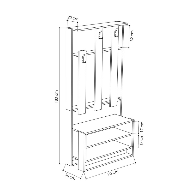 Πλάτος: 90 cm Ύψος: 180 cm βάθος : 36 εκ.