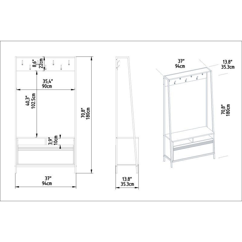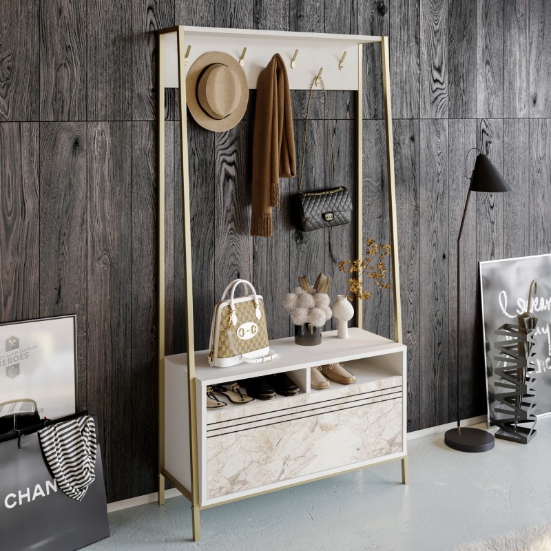 Έπιπλο εισόδου Devin άσπρο μελαμίνη μεταλλικά πόδια 94×35 3×180εκ ed1571