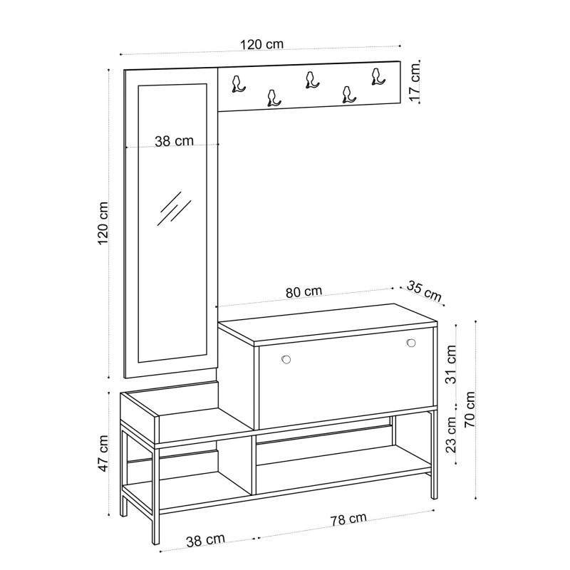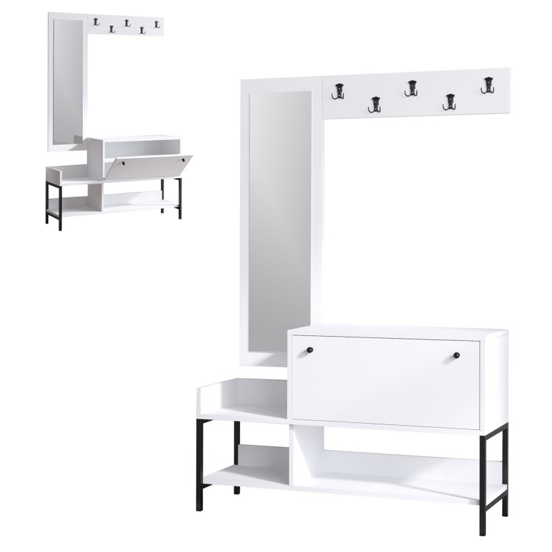 Έπιπλο εισόδου Lopp άσπρο μελαμίνης με μεταλλικά μαύρα πόδια 120x35x70εκ ed7374