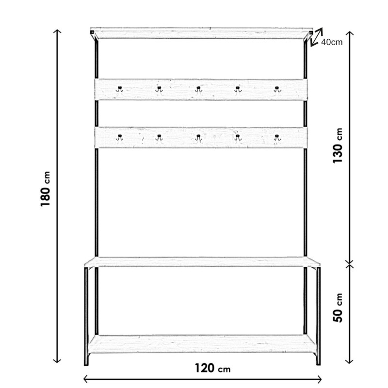 Έπιπλο εισόδου Portmanto Ava δρυς μελαμίνη μεταλλικά πόδια 120x40x180εκ ed1950