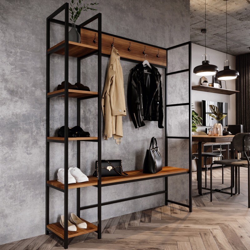 Έπιπλο εισόδου Portmanto Blossom καρυδί μελαμίνη μεταλλικά πόδια 145x35x175εκ ed526