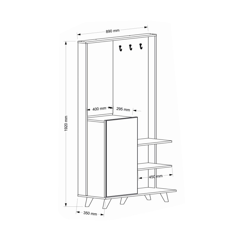 Σταντ Hall Συνολικό μέγεθος: Πλάτος: 89 cm Ύψος: 192 cm Βάθος: 35 cm