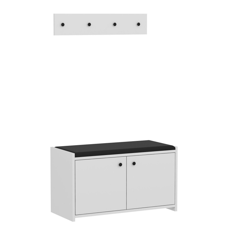 Έπιπλο εισόδου Zeno άσπρο μελαμίνη μαξιλάρι μαύρο και κρεμάστρα 80x35x45εκ ed10028