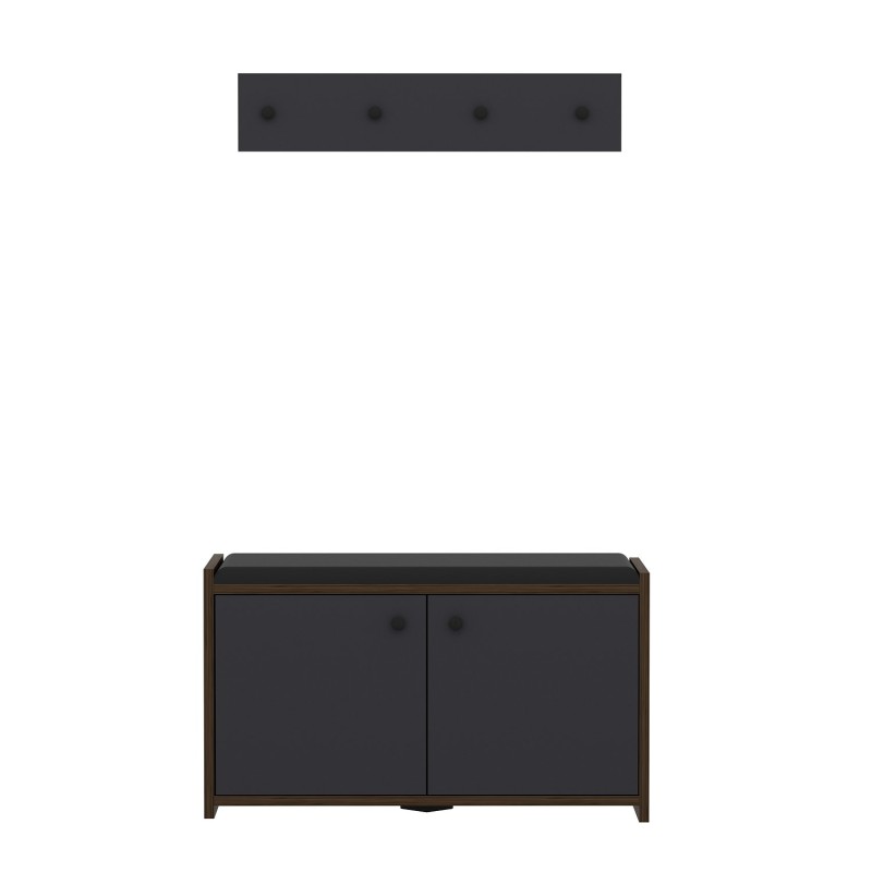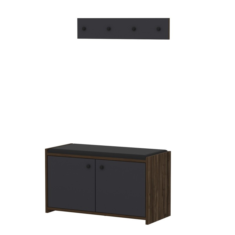 Έπιπλο εισόδου Zeno σκούρο καρυδί ανθρακί μελαμίνη μαξιλάρι μαύρο και κρεμάστρα 80x35x45εκ ed5376