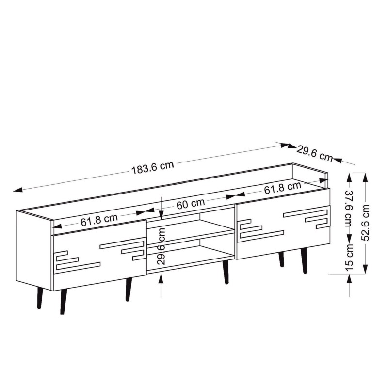 Πλάτος: 183,6 cm Ύψος: 29,6 cm Βάθος: 52,6 cm