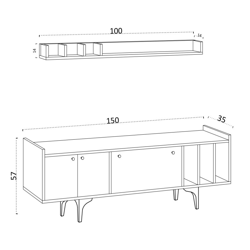 Διαστάσεις: Πλάτος: 150 cm Ύψος: 57 cm βάθος: 35 cm