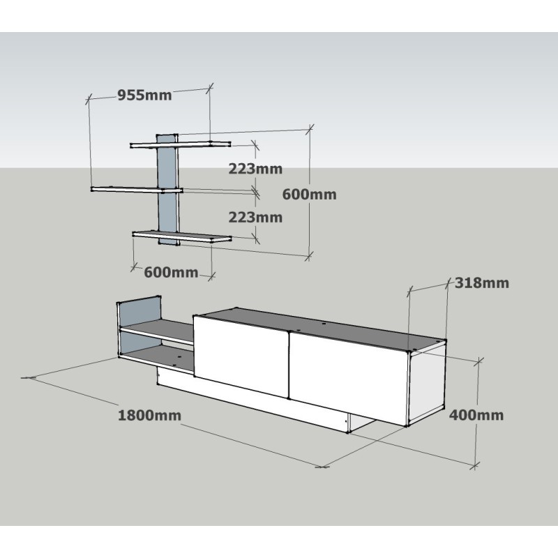 Μέγεθος: Πλάτος: 180 cm Ύψος: 40 cm βάθος: 31,8 cm