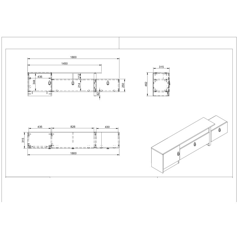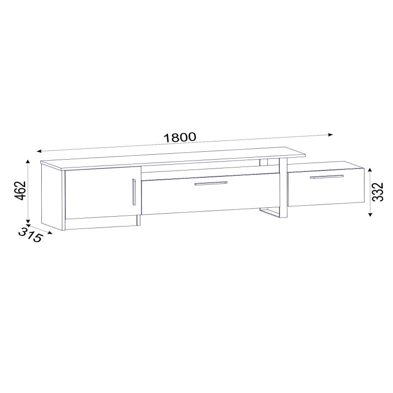 Διαστάσεις: Πλάτος: 180 cm Ύψος: 46,2 cm βάθος: 31,5 cm