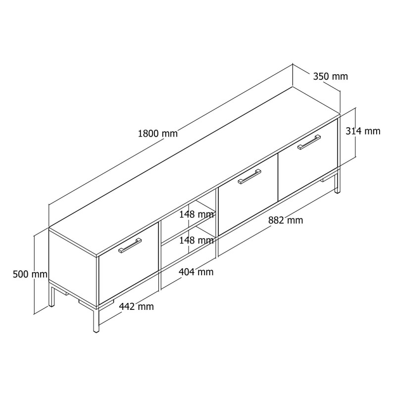 Πλάτος: 150 cm Ύψος: 52 cm βάθος: 34 cm