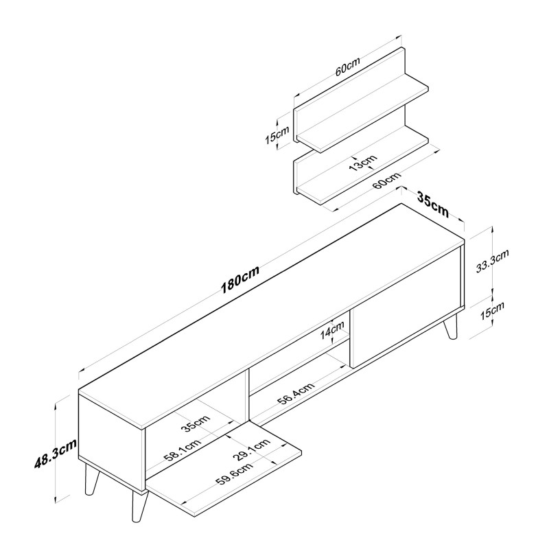 Μέγεθος tv stand: Πλάτος: 180 cm Ύψος: 48,3 cm βάθος: 35 cm