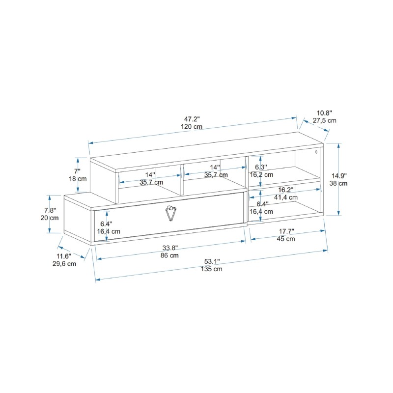 1 τμχ: Μέγεθος: Ύψος: 38 cm Πλάτος: 120 cm Βάθος: 27,5 cm