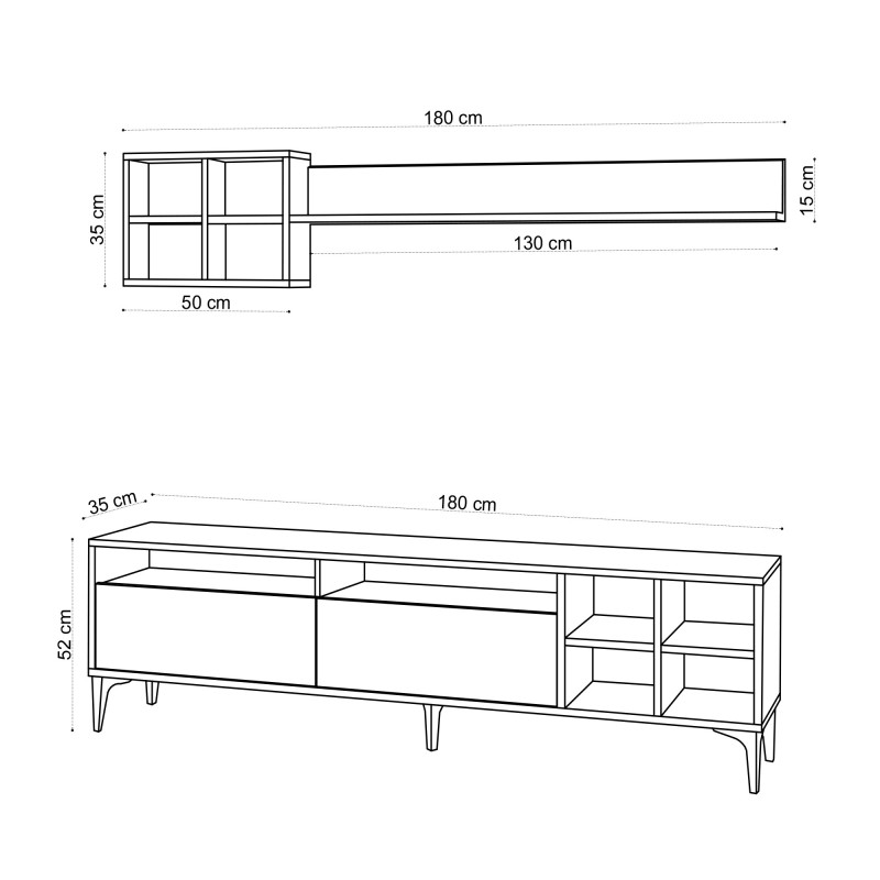 Πλάτος: 180 cm Ύψος: 52 cm βάθος: 35 cm