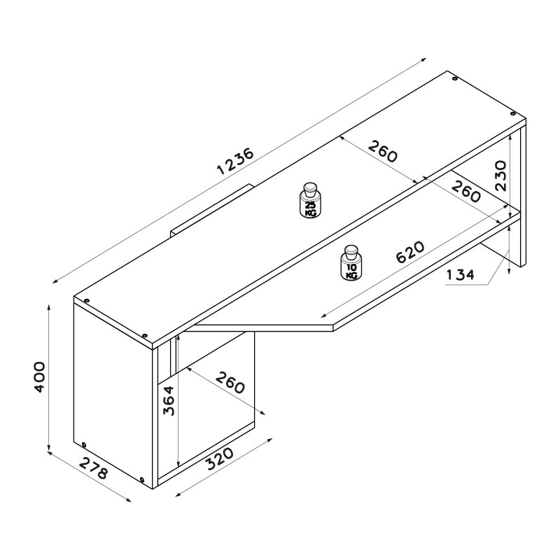 Πλάτος: 123,6 cm Ύψος: 40 cm βάθος : 27.8 cm