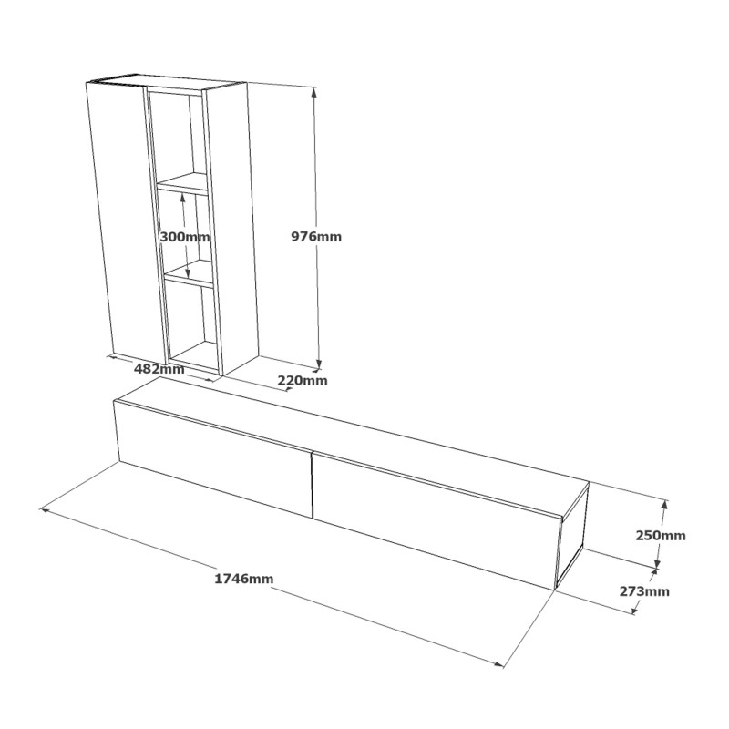 Μέγεθος επίπλου τηλεόρασης: Πλάτος: 174,6 cm ύψος: 25 cm βάθος : 27,3 cm