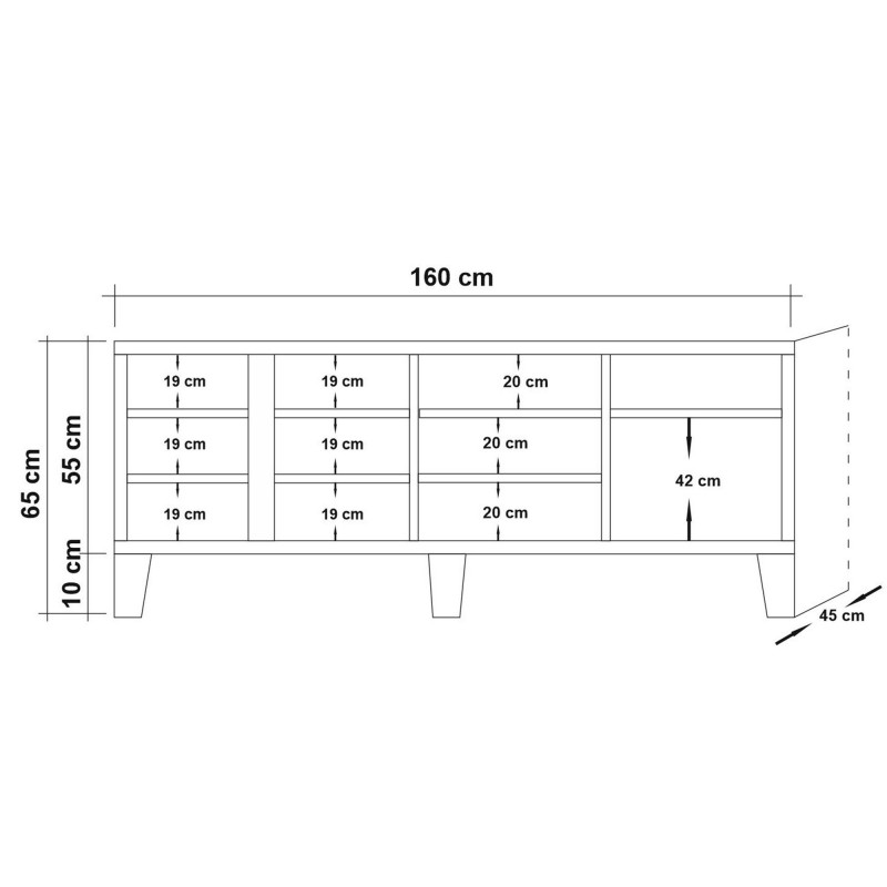 Μέγεθος τηλεόρασης: Πλάτος: 160 cm Ύψος: 65 cm βάθος: 45 cm