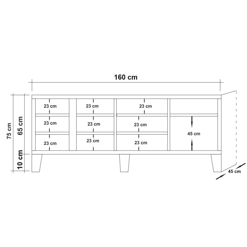 Μέγεθος τηλεόρασης: Πλάτος: 160 cm Ύψος: 75 cm βάθος: 45 cm