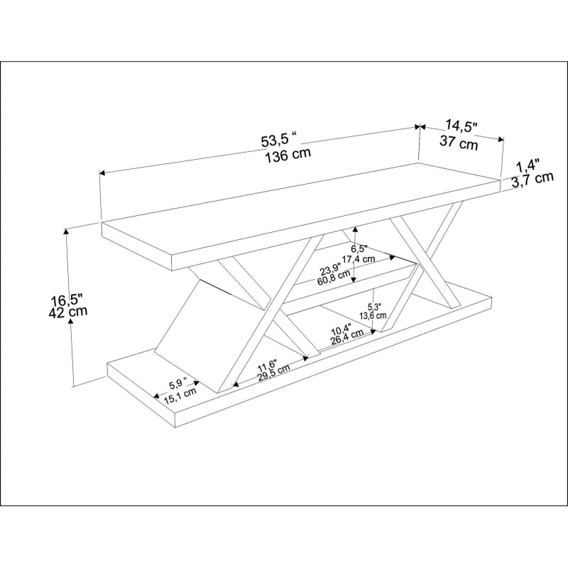 Πλάτος: 136 cm Ύψος: 42 cm Βάθος: 37 cm