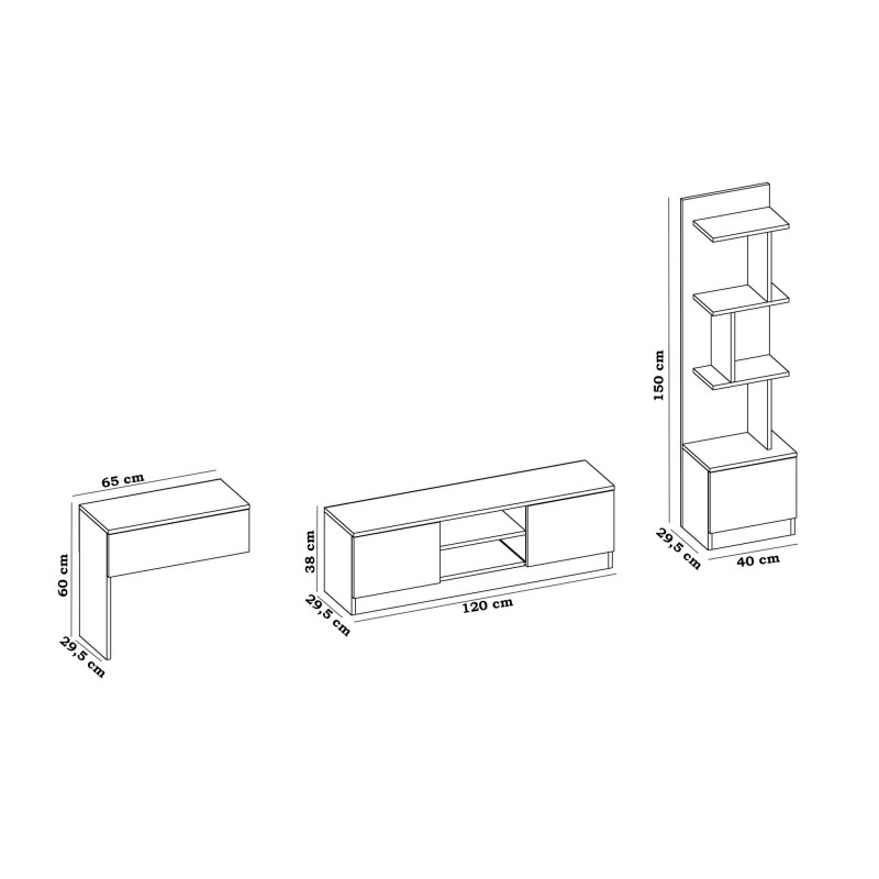 Μέγεθος επίπλου τηλεόρασης: Πλάτος: 120 cm Ύψος: 38 cm βάθος: 29,5 cm
