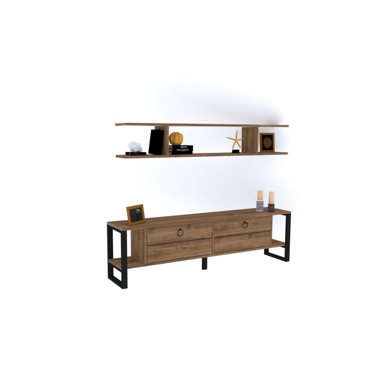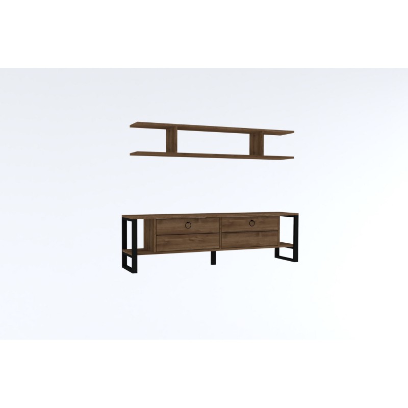 Έπιπλο τηλεόρασης Melis καρυδί μελαμίνη μεταλλικά πόδια 160x30x45cm
