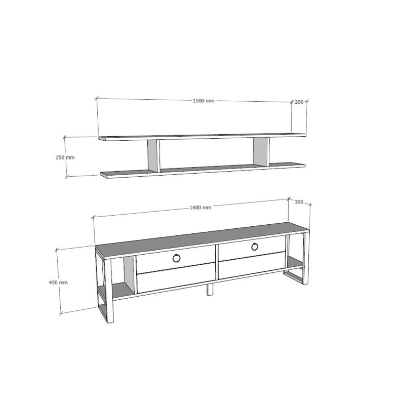 Μέγεθος επίπλου τηλεόρασης: Πλάτος: 160 cm Ύψος: 45 cm βάθος: 30 cm