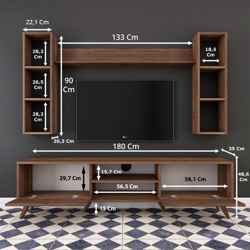 Μέγεθος επίπλου τηλεόρασης: Πλάτος: 180 cm Ύψος: 48,6 cm βάθος: 35 cm