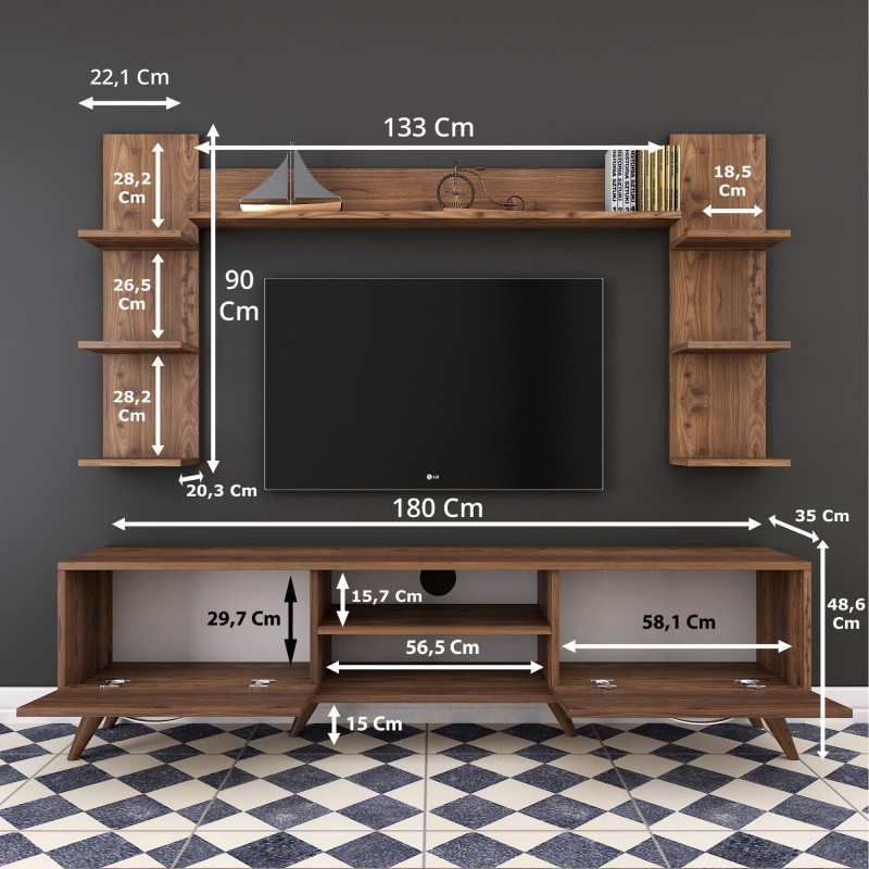 Μέγεθος επίπλου τηλεόρασης: Πλάτος: 180 cm Ύψος: 48,6 cm βάθος: 35 cm