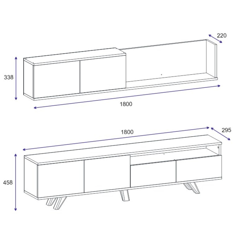 Έπιπλο τηλεόρασης: Πλάτος: 180 cm Ύψος: 45,8 cm βάθος: 29,5 cm