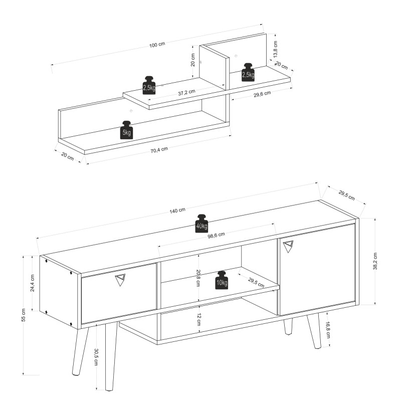 Έπιπλο τηλεόρασης Nida plus μελαμίνη 140x55x29 5cm ed10088