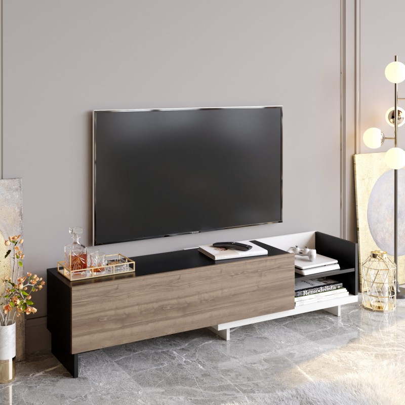 Έπιπλο τηλεόρασης Parion λευκό μαύρο καρυδί 165x35x41cm