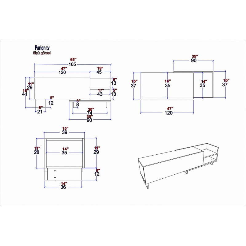 Πλάτος: 165 cm βάθος: 35 cm ύψος: 41 cm
