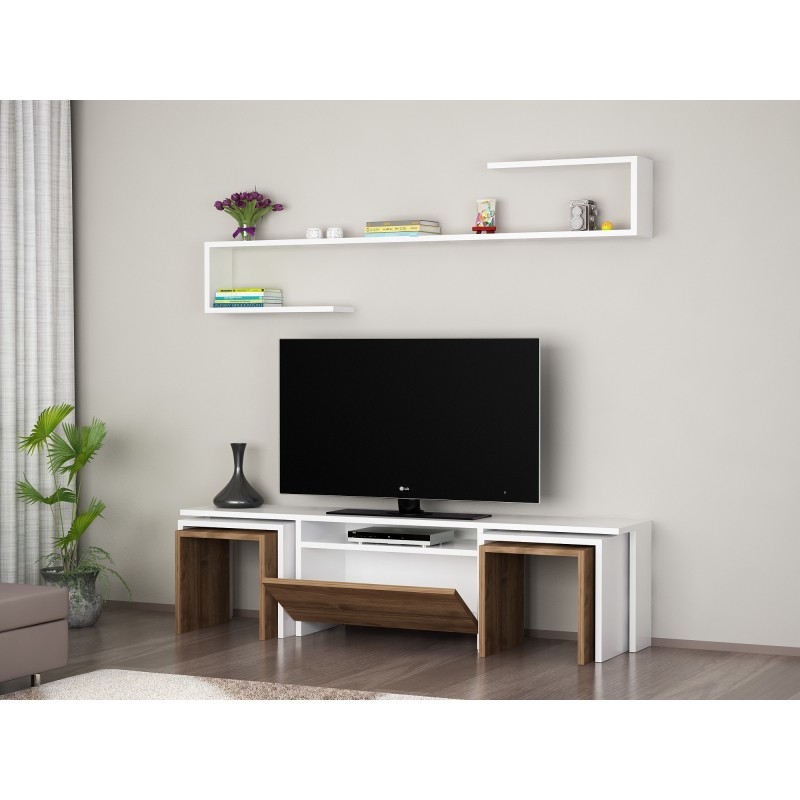 Έπιπλο τηλεόρασης Pezzo λευκό καρυδί 140×29 5×38 5cm