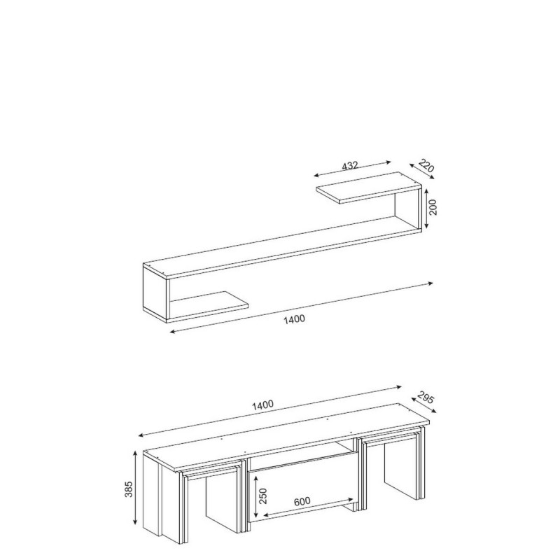 Μέγεθος ραφιού: Πλάτος: 140 cm Ύψος: 20 cm βάθος: 22 cm