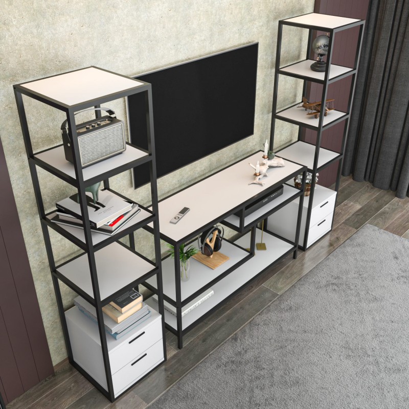 Έπιπλο τηλεόρασης Robbins μαύρο άσπρο 198x39x160cm ed12124