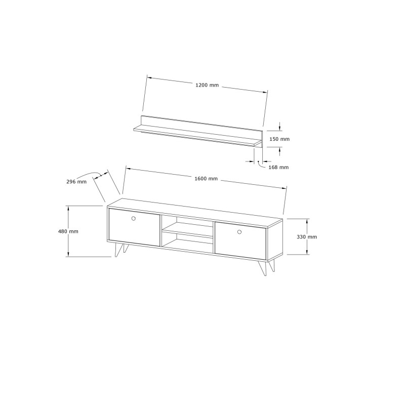 Μέγεθος επίπλου τηλεόρασης: Πλάτος: 160 cm Ύψος: 48 cm βάθος: 29,5 cm
