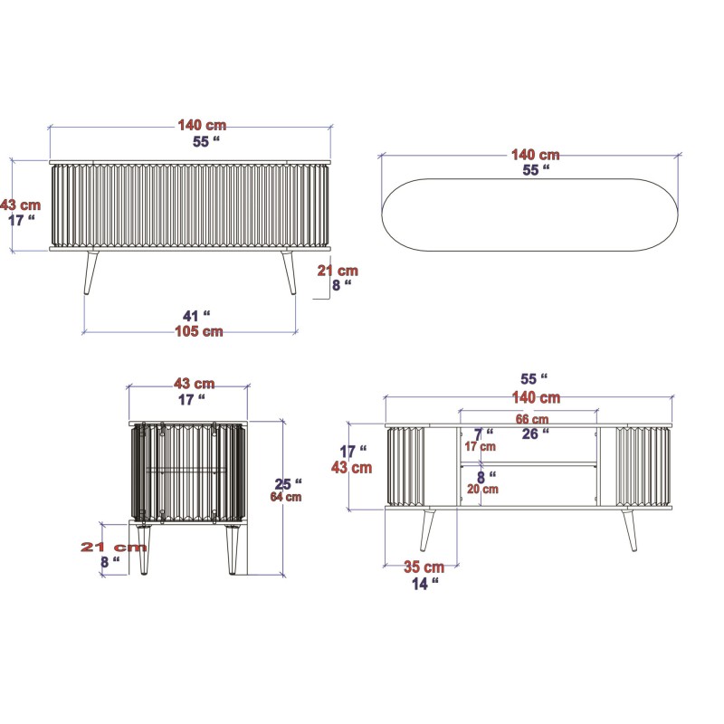 Έπιπλο τηλεόρασης Storari μαύρο ανθρακί 140x43x60cm ed6052