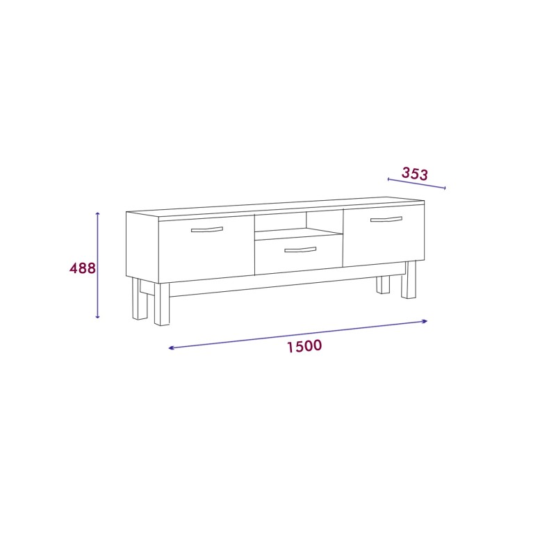 Πλάτος: 150 cm Ύψος: 48,8 cm βάθος: 35,3 cm