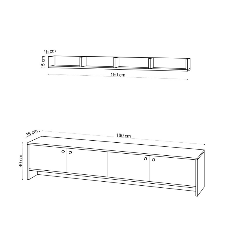 Μέγεθος τηλεόρασης: Πλάτος: 180 cm Ύψος: 40 cm βάθος: 35 cm