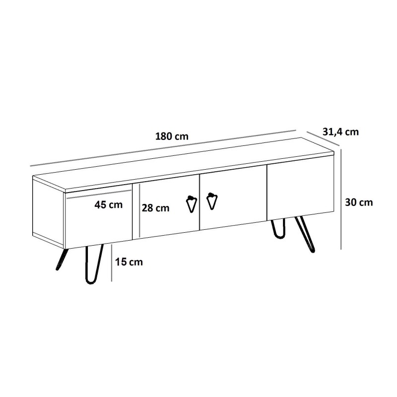 Πλάτος: 180 cm Ύψος: 30 cm Βάθος: 31,4 cm