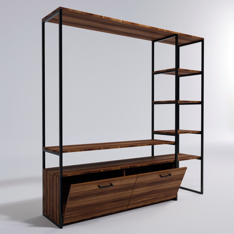 Έπιπλο TV Biblo καρυδί χρώμα μελαμίνη μέταλλο 180x40x180cm ed1169