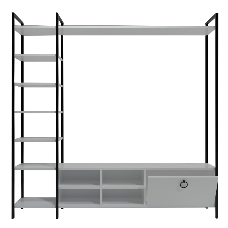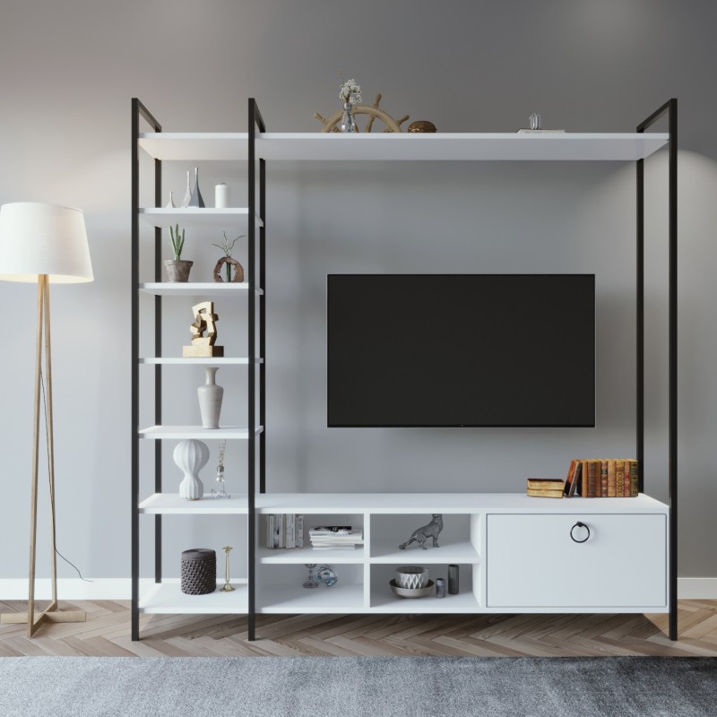Έπιπλο TV Biblo λευκό χρώμα μελαμίνη μέταλλο 180x40x180cm