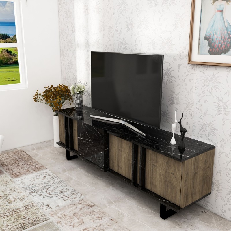 Έπιπλο tv Deco καρυδί χρώμα μελαμίνη 150×37 1×54 6cm ed4894