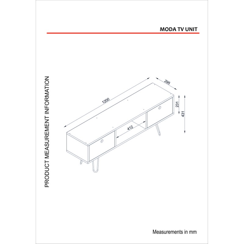 Πλάτος: 120 cm Ύψος: 43,1 cm Βάθος: 29,5 cm
