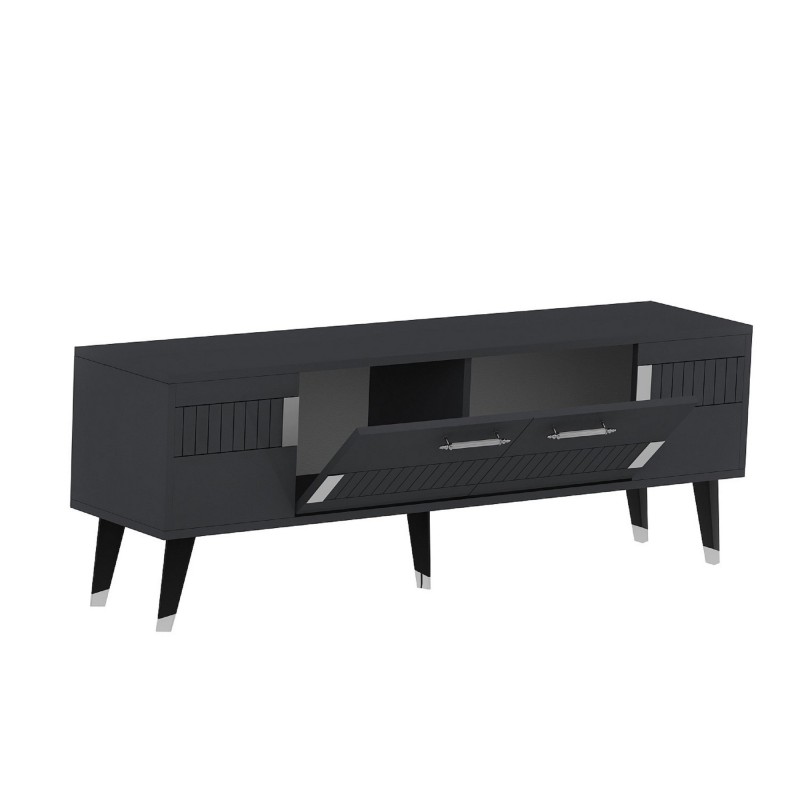 Έπιπλο tv Moda ανθρακί ασημί χρώμα μελαμίνη 150x35x53 2cm