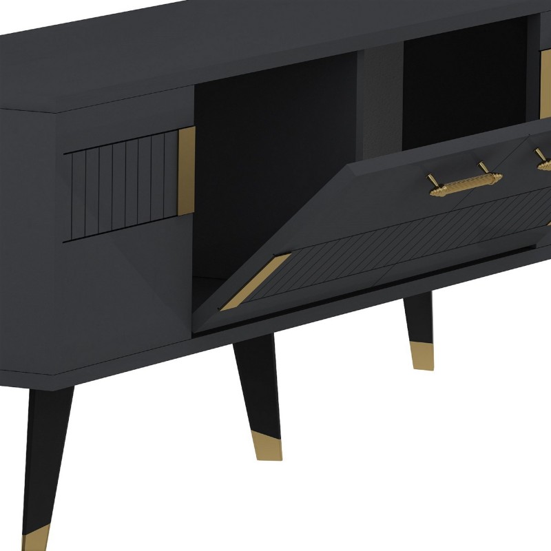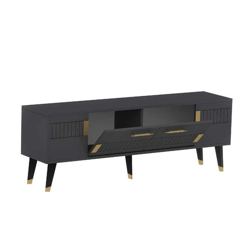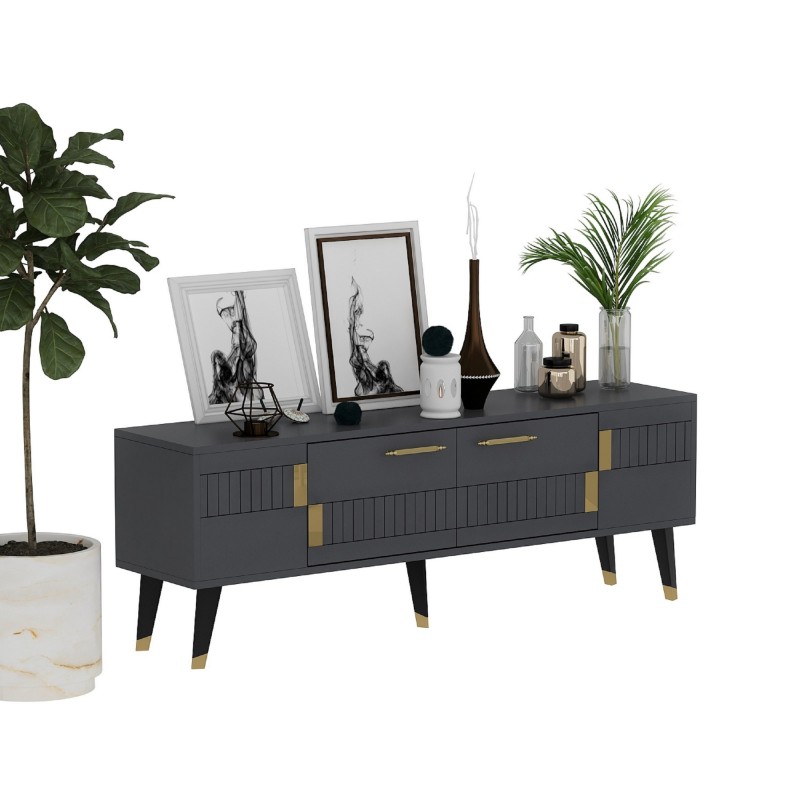 Έπιπλο tv Moda ανθρακί χρυσό χρώμα μελαμίνη 150x35x53 2cm