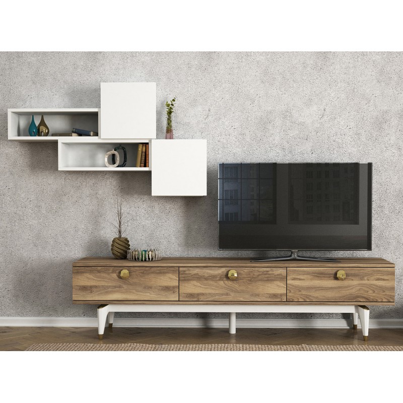 Έπιπλο TV Vince χρώματος λευκό καρυδί 180×29 5×43 1cm ed7200