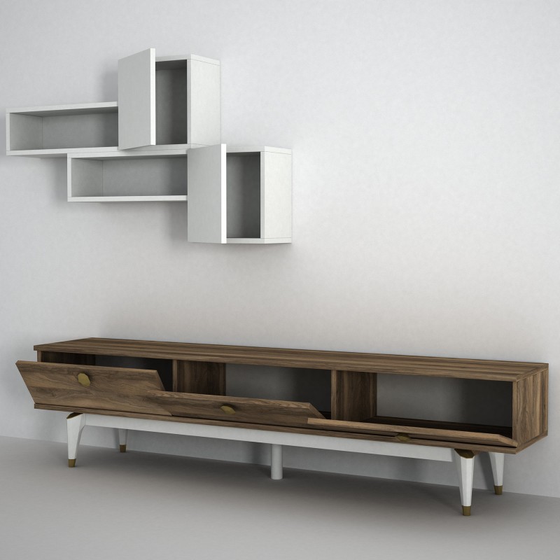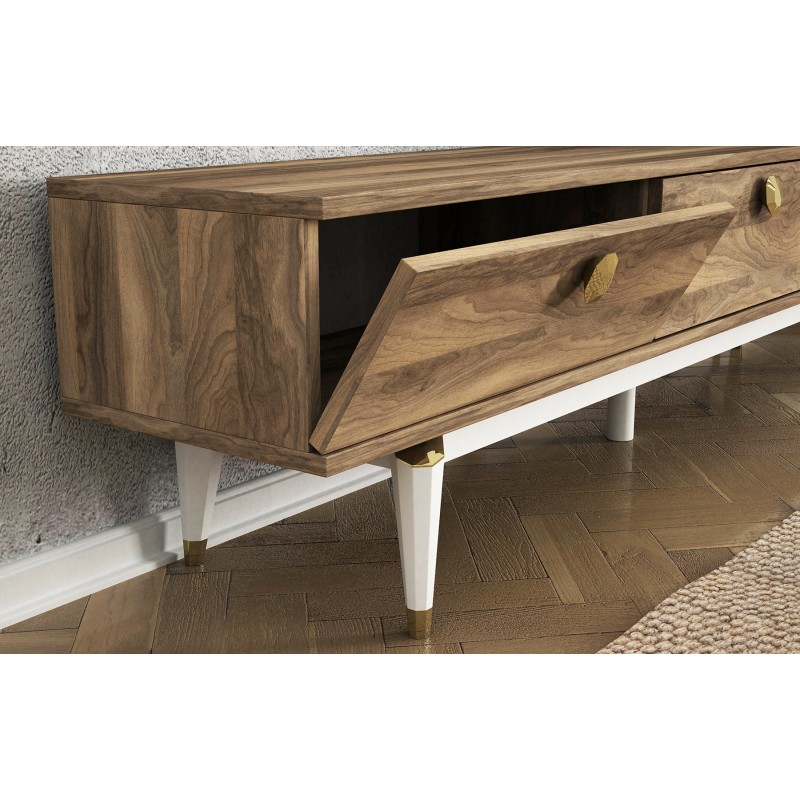Έπιπλο TV Vince χρώματος λευκό καρυδί 180×29 5×43 1cm