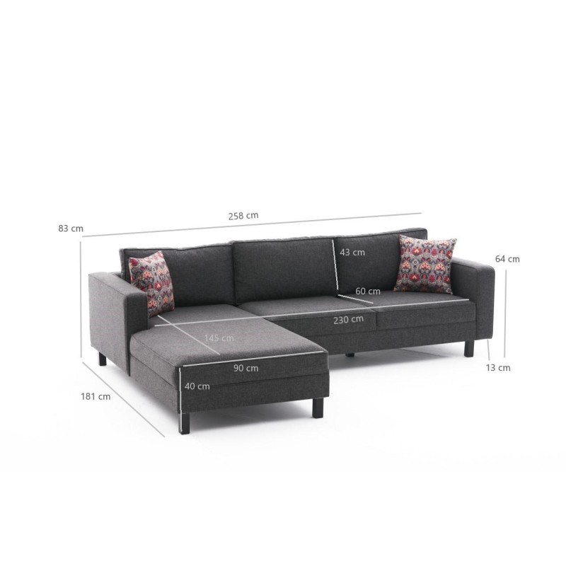 Γωνιακός καναπές Kale Left ανθρακί 258x181x83cm ed5228