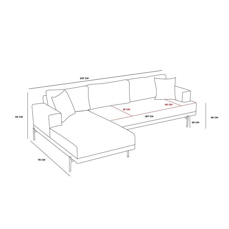 Γωνιακός καναπές Liva Right ανθρακί 287x171cm