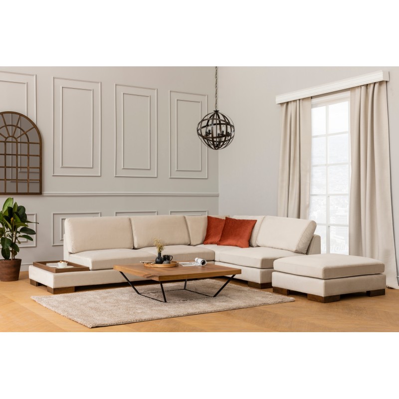 Γωνιακός καναπές Tulip Corner Right με πουφ γκρι 193x313cm